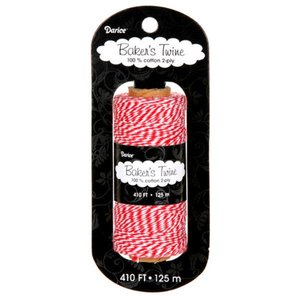 This is high quality, strong red and white bakers twine, presented on a traditional card spool.