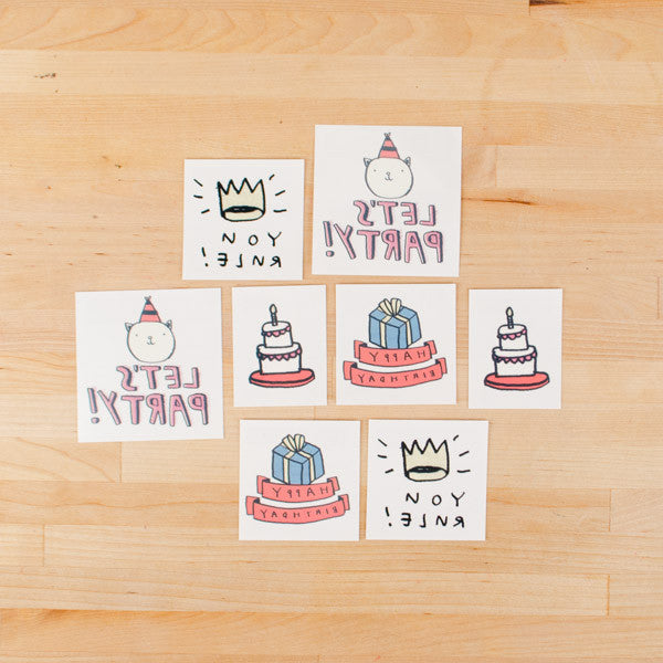 Temporary Tattoos: Cake - Birthday - Set of 8