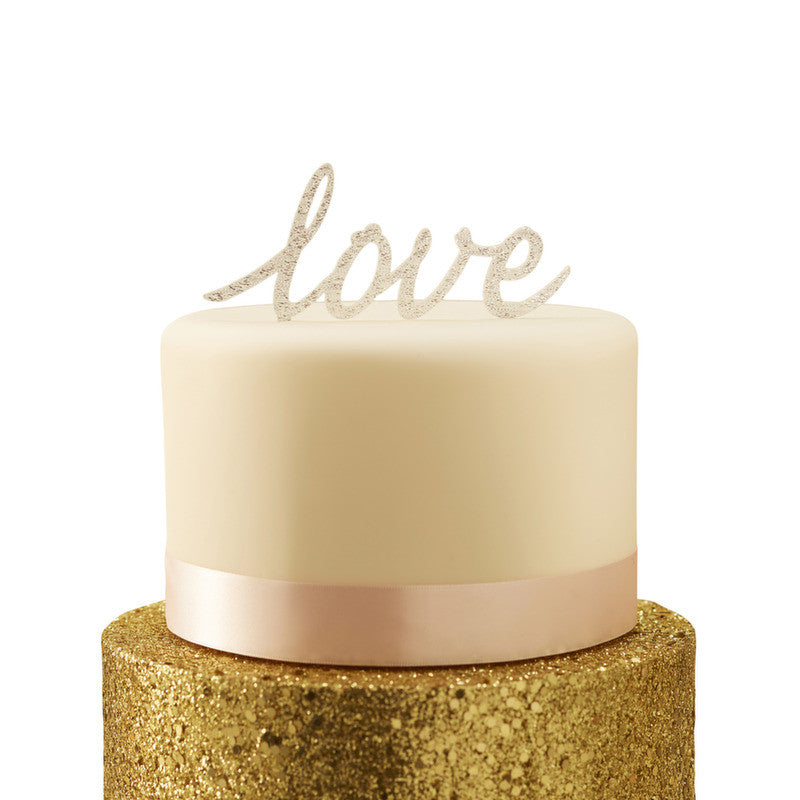 Gorgeous glittery silver cake topper spelling out 'Love'!