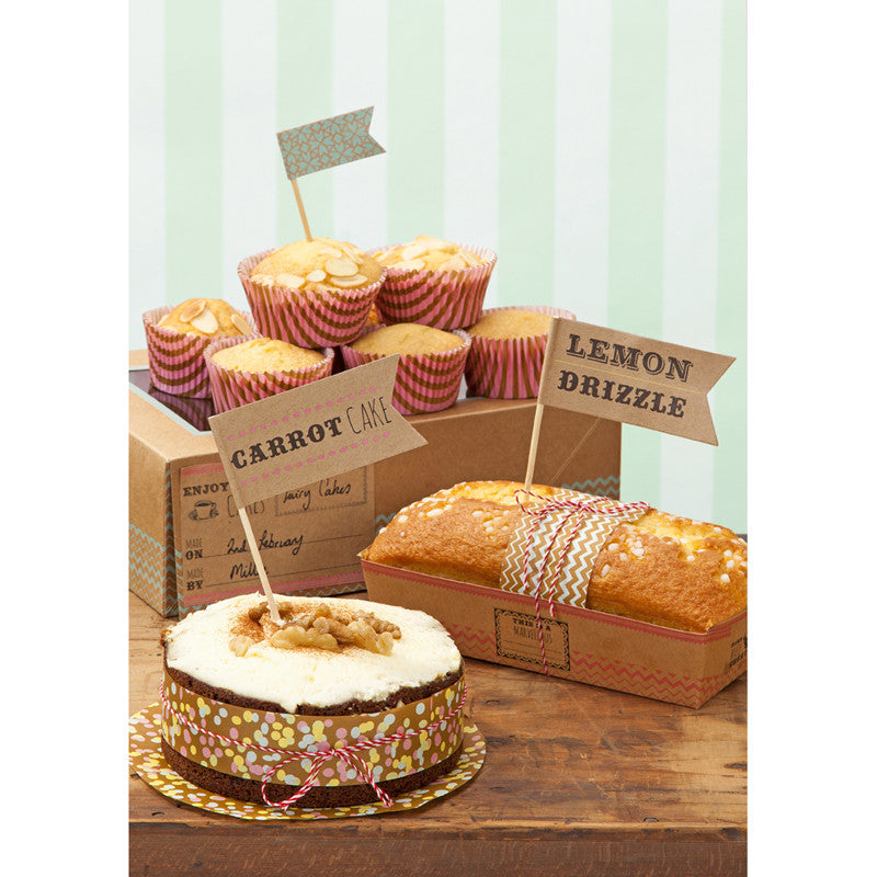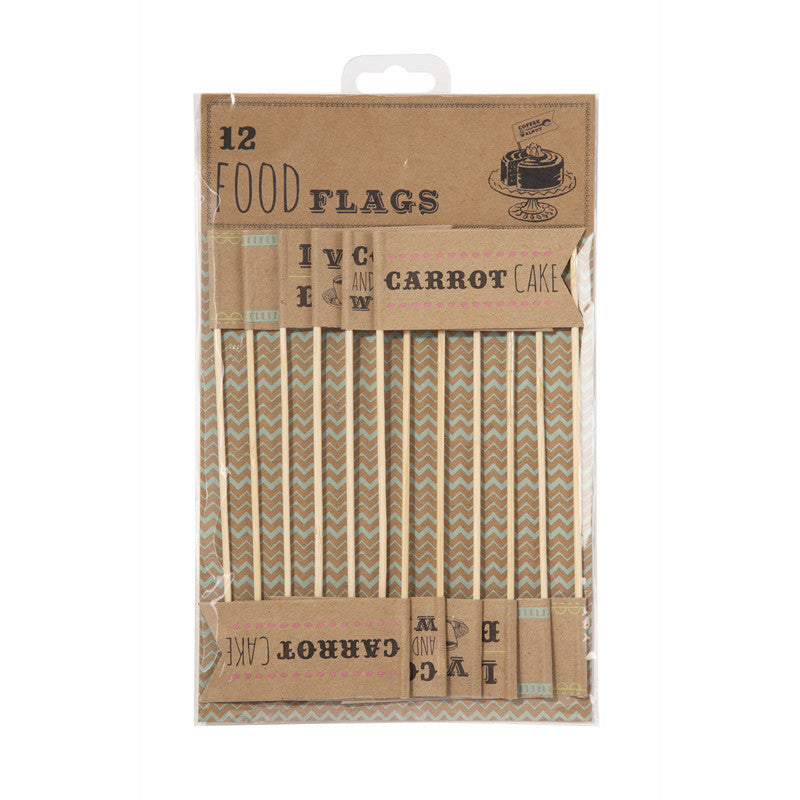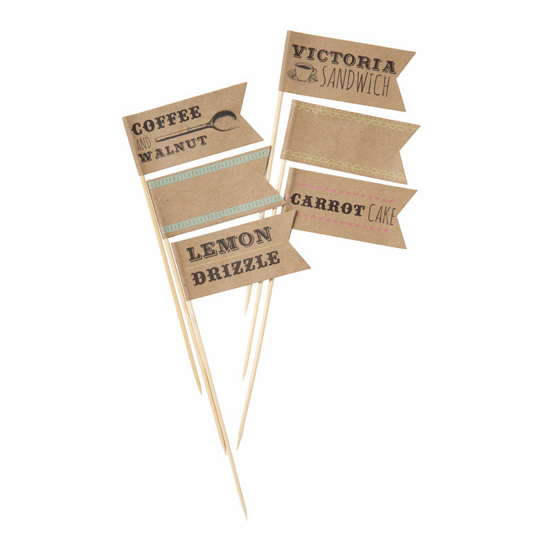 These fantastic larger than average kraft food flags are a great way to clearly and professionally label your cakes and bakes. 12 in a pack with 2 each pre-printed with these old favourites: