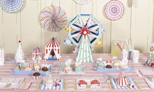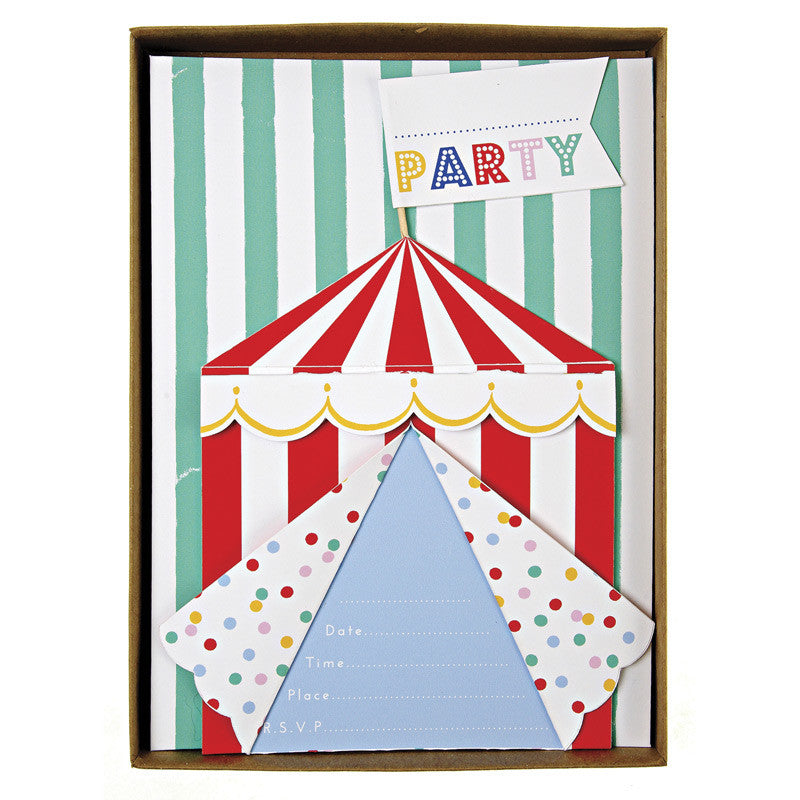 These gorgeous party invitations are truly enchanting and form part of the lovely mix and match Toot Sweet range. The cards are decorated in the style of a circus tent and are designed for the flaps to open up and reveal the invite inside.