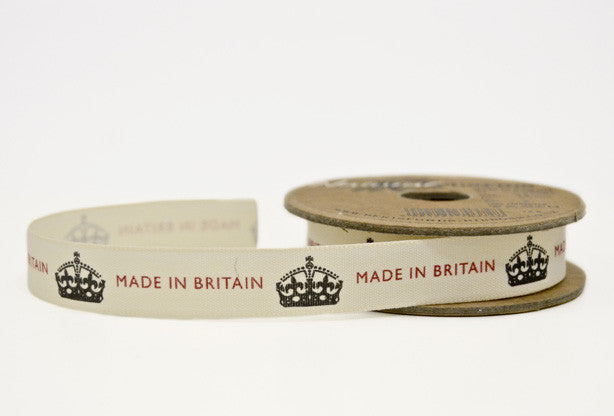 Ribbon: Made in Britain with Crown - 15mm 20m