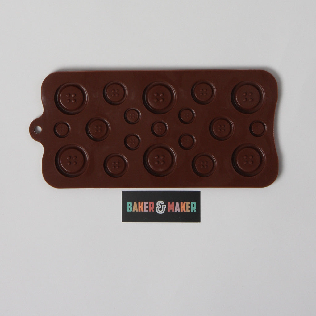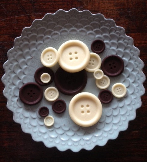 Create your own buttons out of chocolate, candy melts, icing, sugar paste or even resin, soap or wax. Lots of ways in which they can be used - quick, easy and very effective cake decorations, cupcake toppers or on their own as gifts in a cello bag with ribbon. We've also seen them used to cover bigger cakes, lots of white buttons together makes a stunning wedding or christening cake. Try using candy melts to create brightly coloured buttons.