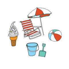 The Beach Set includes all your favourite beach icons, ice cream, beach ball, deckchair, sun umbrella and bucket and spade.