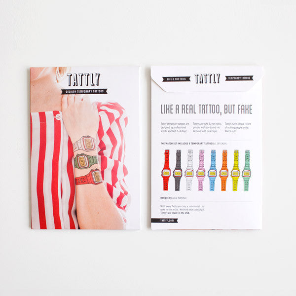 The Watch Set includes the You're Late watch in black, blue, lime, orange, pink, white, and its original turquoise.