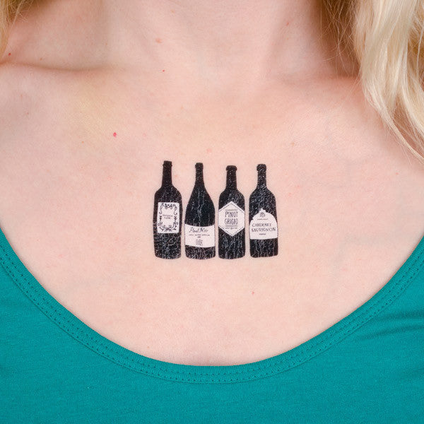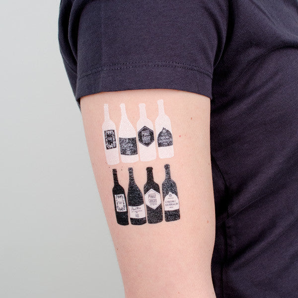 It's always wine o'clock with these wine bottle tattoos! Whether you have an occasional glass or are a connoisseur, there's plenty to go around. Julia Rothman's charming design comes in both red and white varieties and can be worn in moderation or a bit more generously!